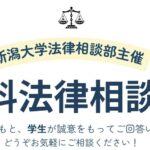 - 【2025年度】夏季無料法律相談会実施のご報告【新潟大学法律相談部】2025年7月12日(土)に夏季無料法律相談会を無事開催いたしました。 相談会に向け、これまで3回にわたって模… 続きを読む: 【2025年度】夏季無料法律相談会実施のご報告【新潟大学法律相談部】